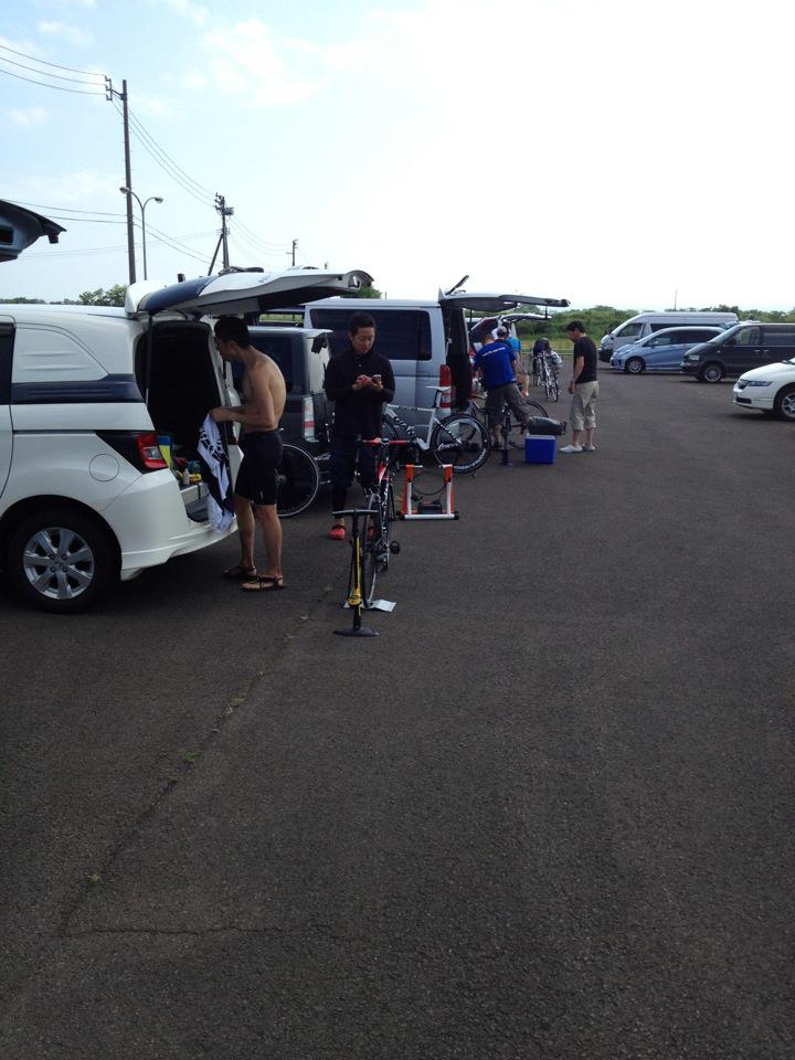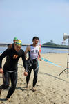 足についた砂を払いながらバイクの準備、ウエットスーツが上手く脱げずトランジッションのタイムも今年13年目の貫禄など微塵も見えなかった。