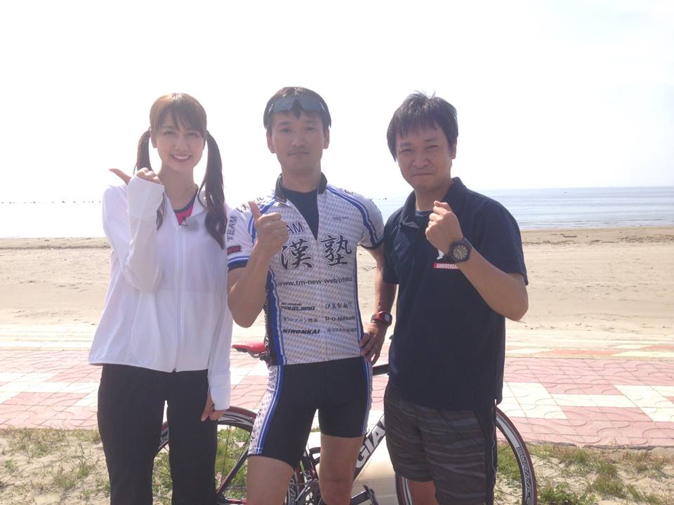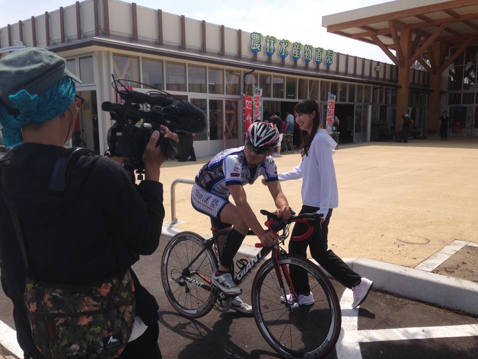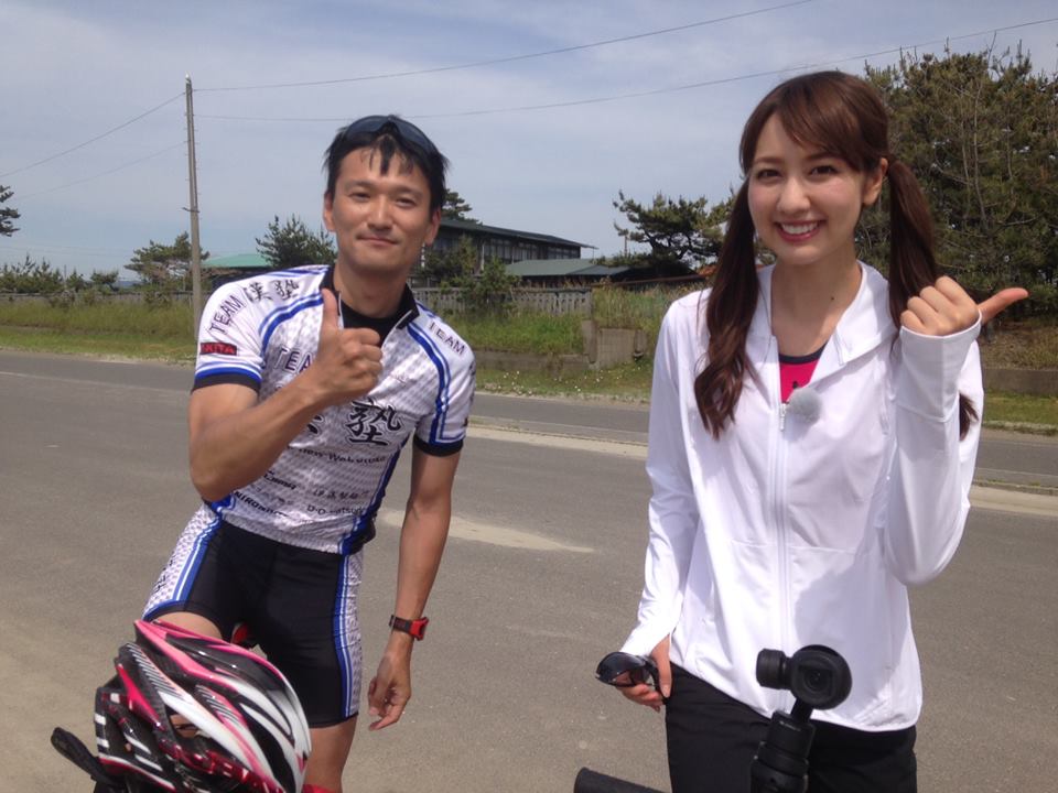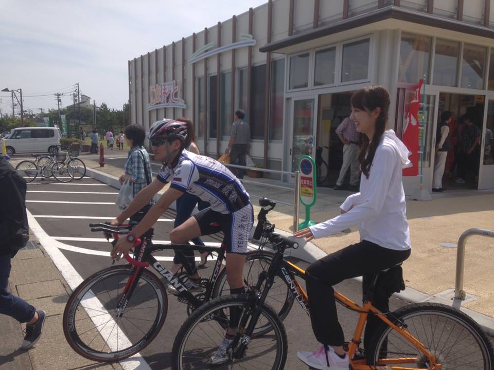 フリーアナウンサーの相場詩織さんと道の駅から芭蕉レースの大会会場までサイクリングするシーン