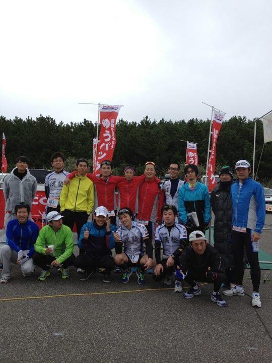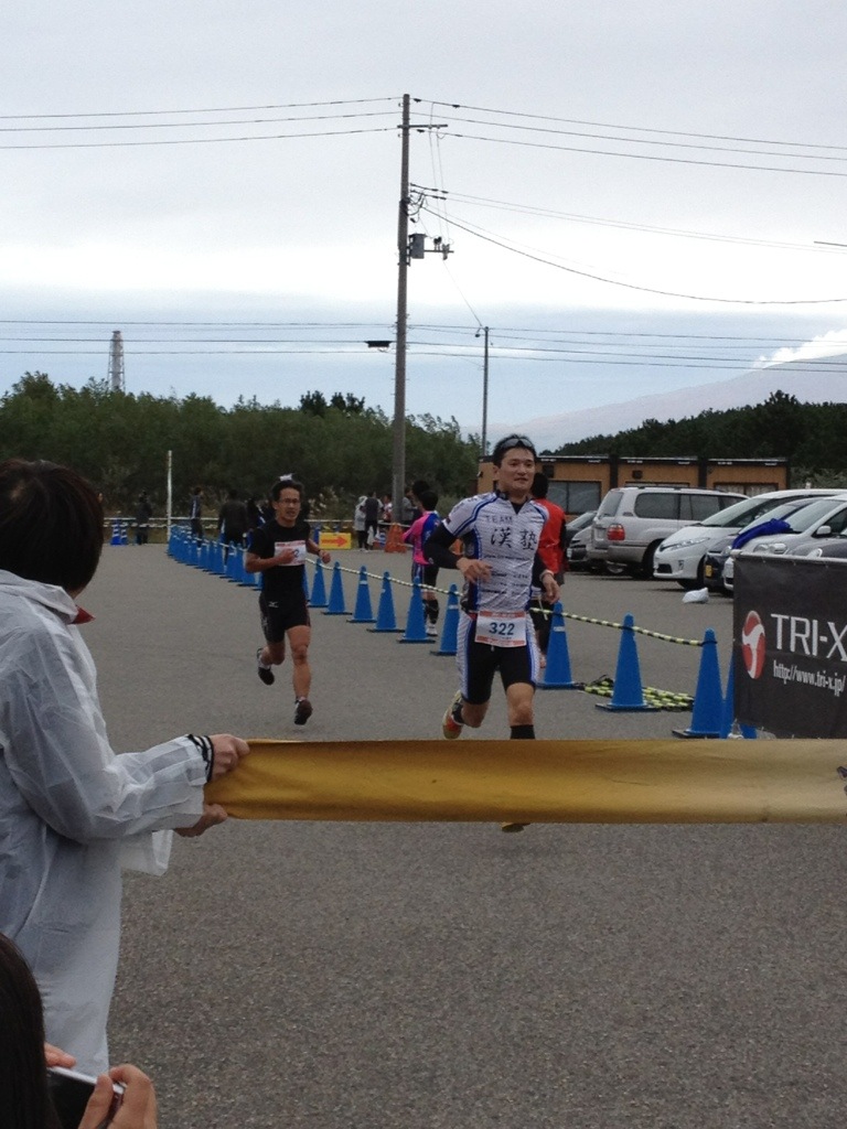 4分7秒、腕時計でタイムを確認して驚いた、強風の中スタートしたデュアスロン、第一ランの1km地点であります。 狙ったペースは4分20秒、それほど力んだつもりはなかったのだが、やはり周りのペースに引っ張られたか・・・ デュアスロンは5kmラン、30kmバイク、5kmランの順番で行なう競技です。 トライアスロンの1.5kmスイム、40kmバイク、10kmランよりは距離的に短く、楽に思われるかもしれないが これが実は逆で常にギリギリのペースを維持する過酷なレース。 少しペースを落とそう と確認した2km地点は4分30秒・・・あわわ 落としすぎたw 2.5kmを2周するラン。 今回デュアスロンは6回目、しかし全くなれないスタートのペース配分w しかし塾内6連覇がかかる負けられないこのレース。 現在トップは予定通りK平、後姿が見えないくらい差が付いた、それを追う私、シゲ、K司。 2.5km地点で後から声がする「うわっ2周かよこのコースwペース上げすぎたw」「俺もっス」とK司とシゲの声。 振り返って返事をする余裕は無いが、ピッタリくっ付かれているのは確認した。 3km地点あたりでシゲが前に出た、それを1度4km辺りで抜かし返すも再度抜かし返されトランジッションへ。 5kmのコースを6周するバイク、シゲと2人 K平の背中を追いかける(ドラフティングはしてませんw)タイム差は3分ほどか? 塾内で勝つにはK平はバイクで差をつけないと第二ランで差し返される、それは隣にいるシゲも同じはずw バイク2周目、同じチームジャージに後から一気に追い越される リレー参加のT也だった、あまりに圧倒的な速さΣ(・口・) 「こんニャローーー!!!」と後姿に咆えてみたが負け犬乙w シゲに「(T也さん追っかけて)行きますか?」と聞かれるが「それは無理だろww」とまた2人旅。 3周目、K平がなかなか落ちてこない、すれ違った時のK平の笑顔で「あの野郎 なかなか落ちてこねぇなw」「なんかやばくないっすかw?」と少し動揺する分かりやすい2人w 4周目、やっとシゲを競り落とし やっとK平の背中が見えてきた、5周目に入る前にK平を差しきる 抜かしざま「バイバイキーンー(とかなんとか言ったと思う ちょっと覚えてない)!」「チキショー!!!」と悔しがるK平の声を後に聞きながらぺースを上げる。 やっと塾内トップに躍り出た、後は第二ランで追い上げてくる奴らにセーフティーリードを広げるだけだ。 5周目、現在2番手に上がったシゲには2分、K平に3分、Y也にも3分位はリードしておきたい。 6周目、シゲのすれ違う位置が5周目と変わらない、差が広がっていないのはシゲがペースを上げたのか、私のペースが落ちたのか?w K平の差は広がったか?Y也は・・・ああぁ辛くなってきてそれどころではなくなってきた・・・・ それでも、容赦なく第二ランが始まる トランジッションで娘の応援している声に頷きながら辛い時間の始まり。 バイク後のランは、それまでのスピード感がなくなり、心拍が一気に上がる。 今回も、やはり脹脛労働組合が強行にストライキの構え・・・ヤバイ、もう攣りそうだw 1周目の折り返し、すれ違うシゲが私とハイタッチしながらこちらとの差を確認しているのが分かる、 も ら ッ た な ! と言わんばかりの表情だ、 こちらは逆に や ら れ た な の表情w 2km地点で後から足音が迫ってきた、これでもかの ド ヤ 顔 で追い越していくハゲ いやシゲの背中を見送りながら塾内6連覇の目標が遠ざかっていくのを痛感┗┃ ̄□ ̄;┃┓ ガーン!! これから抜かし返す根性と体力がないですタイ・・・おやっさん 燃え尽きたぜぇw 結局このままシゲに差を広げられ塾内2位でゴール。 塾内順位は シゲ、私、K平、Y也、W部さん、サイボーグ、K司、Y、Y樹、塾長、F谷の順・・・・おーい塾長なにやってんだwww 強風で寒い中のレースでしたが、皆で出るとやっぱり楽しいヽ(´▽`)/へへっ タイム総合 1時間37分54秒 総合42/126位 第一ラン0:21:56 57位 バイク0:50:40 12位 通過順位23位 0:25:18 79位 大会関係者の方々、ボランティアの方々お疲れ様でした。 PR コメントを投稿する